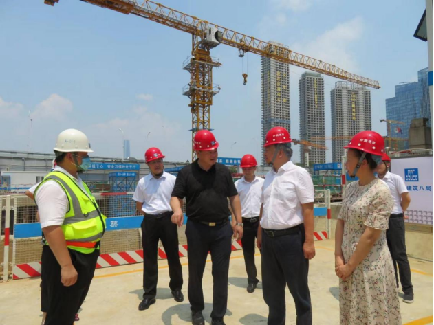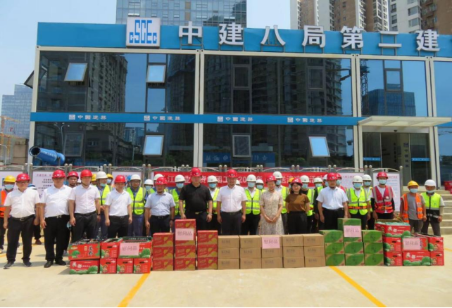 8月3日,长江产业集团党委副书记、总裁黎苑楚一行前往高投资本中心项目现场开展“夏送清凉”活动,集团工会副主席彭静、长江运营总经理刘少柏,副总经理、工会主席龚善涛陪同慰问。
