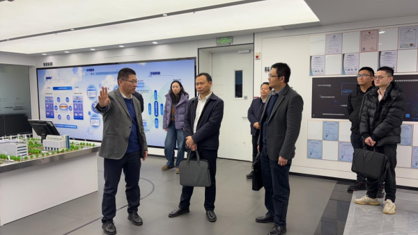 会前,王进陪同汪伟一行参观并介绍综合能碳公司基本情况、业务布局,以及综合能源管理平台、虚拟电厂平台的功能架构与应用场景。
