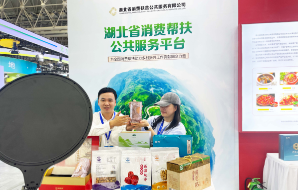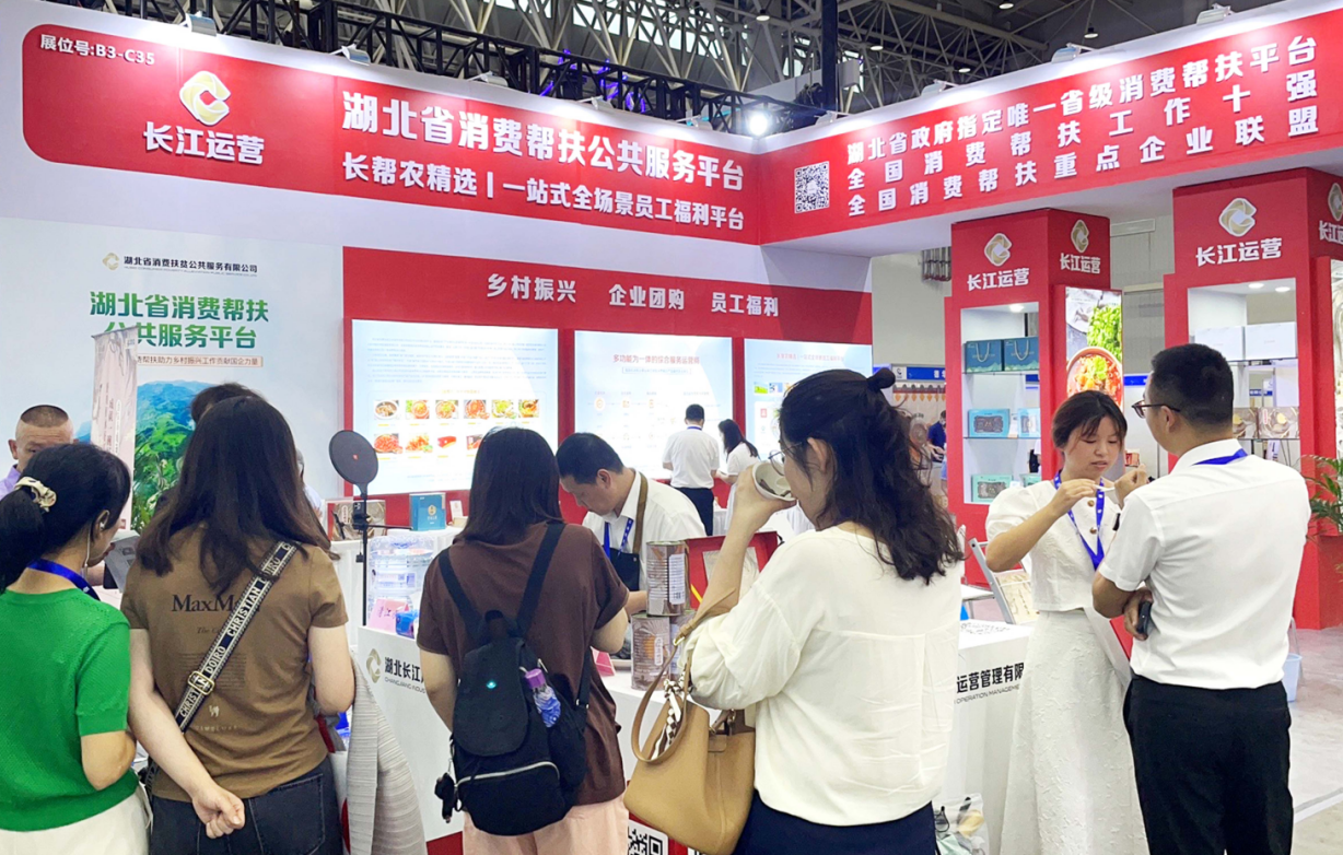 近日,2023年第八届武汉国际电子商务暨“互联网+”产业博览会在武汉国际博览中心开幕,吸引了1000余家电商企业参会。消费帮扶公司作为本次展会参展单位,现场展陈郧阳白玉乌鸡汤、东南醇联名款牛三鲜等20余款产品,重点推广全省优质地标产品。
