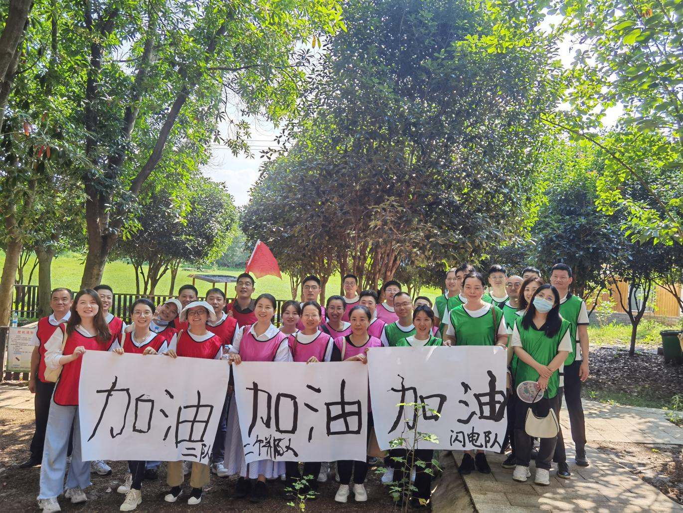 随后,在专业教练的带领下,三家公司联合组织开展员工拓展活动。拓展活动期间,全体人员积极参与各类团队建设项目,包括团队拓展训练、合作挑战赛、益智游戏等,旨在通过团队合作的方式培养员工的团队意识、沟通能力和解决问题的能力。经过一下午的比拼,各组团队充分认识到,比赛中良性赛马、互相激励的重要性和必要性,作为一个整体,只有通过互相赋能、共创共享,才能合力筑梦。