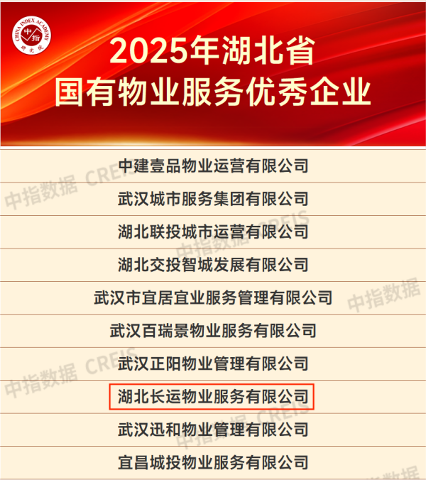 本次评选中,长运物业凭借在物业服务领域的突出表现,获评“2025年湖北省国有物业服务优秀企业”。