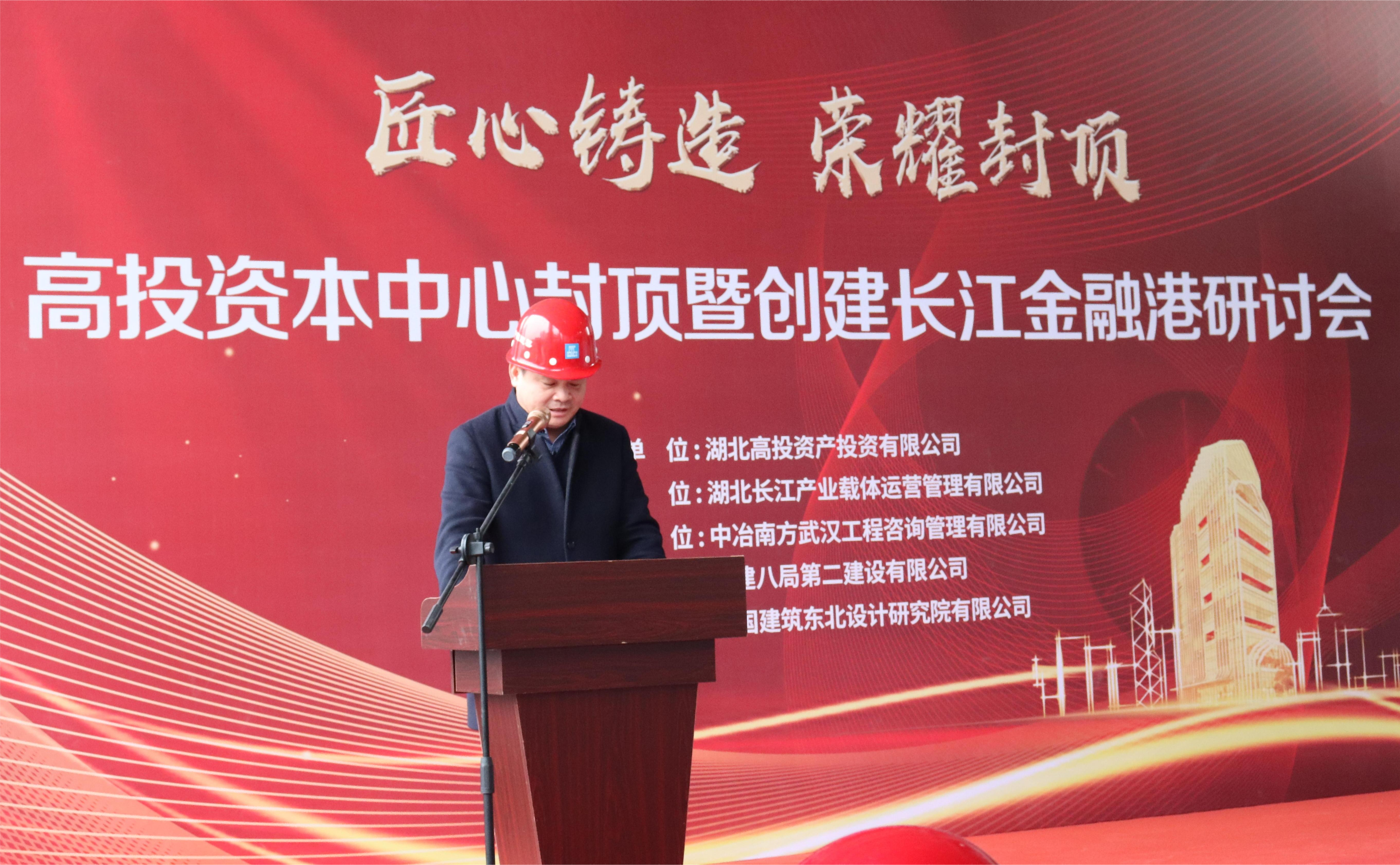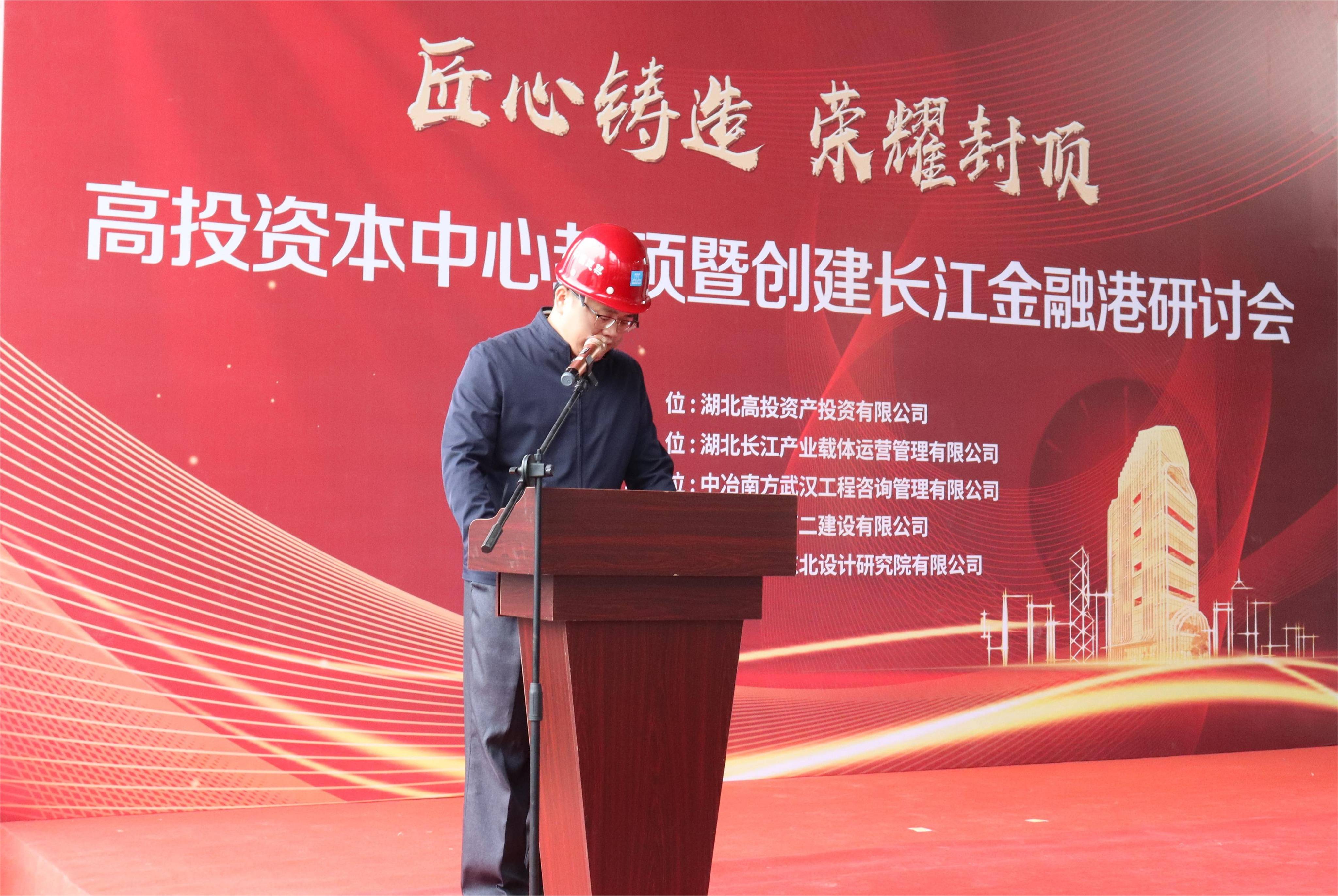 3月29日上午10:18分,高投资本中心项目举行封顶暨创建长江金融港研讨会。武昌区政协副主席、水果湖街道党工委书记陈烈,长江产业投资集团党委委员、副总经理董志发,长江运营党委书记、董事长刘明朝,总承包公司中国建设第八工程局华中分局副局长彭瑜等合作单位、开发单位、参建单位相关领导及代表出席活动。