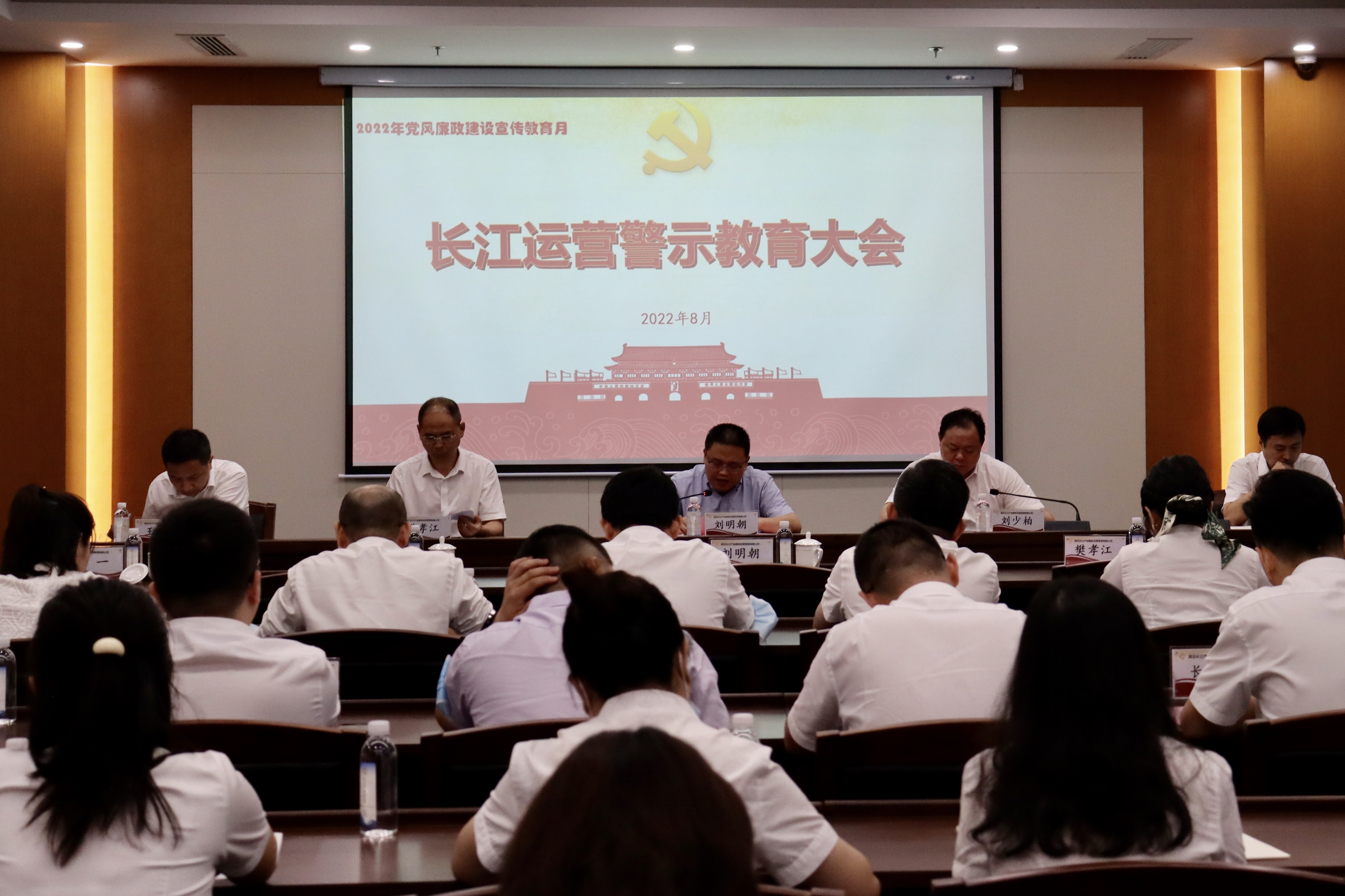 8月18日,长江运营召开2022年党风廉政建设宣传教育月活动动员会暨警示教育大会,参会人员集中观看了警示教育片,长江运营党委书记、董事长刘明朝以“坚持全面从严治党 强化清廉实干担当”为题讲授廉政党课。公司党委副书记、总经理刘少柏主持会议。公司党委委员、纪委书记兰一传达《长江运营党委2022年党风廉政建设宣传教育月活动方案》。