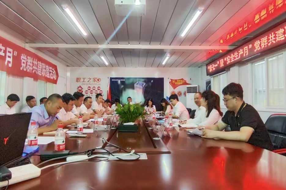 在活动中,全体党员集体唱国歌、重温入党誓词,过政治生日,党支部书记讲授了党课。接着活动进入红色诵读环节,大家一起重温红色党史,观看电视专题片《生命重于泰山——学习习近平总数据关于安全生产重要论述》,并由项目人员开展《施工作业现场典型违章及隐患》知识培训,还慰问了坚守一线岗位的工作人员。