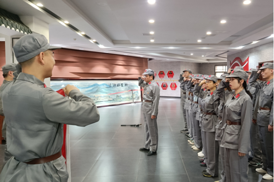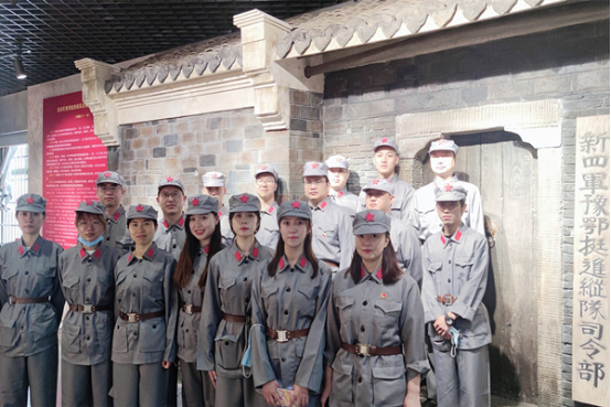 看史迹、知初心。活动当天,全体职工着红军服装参观新四军第五师史记陈列馆及新五师司政机关旧址,并开展了“重走长征路”、“党建知识问答”、“重温入党誓词”“齐心协力画红星”等特色活动。