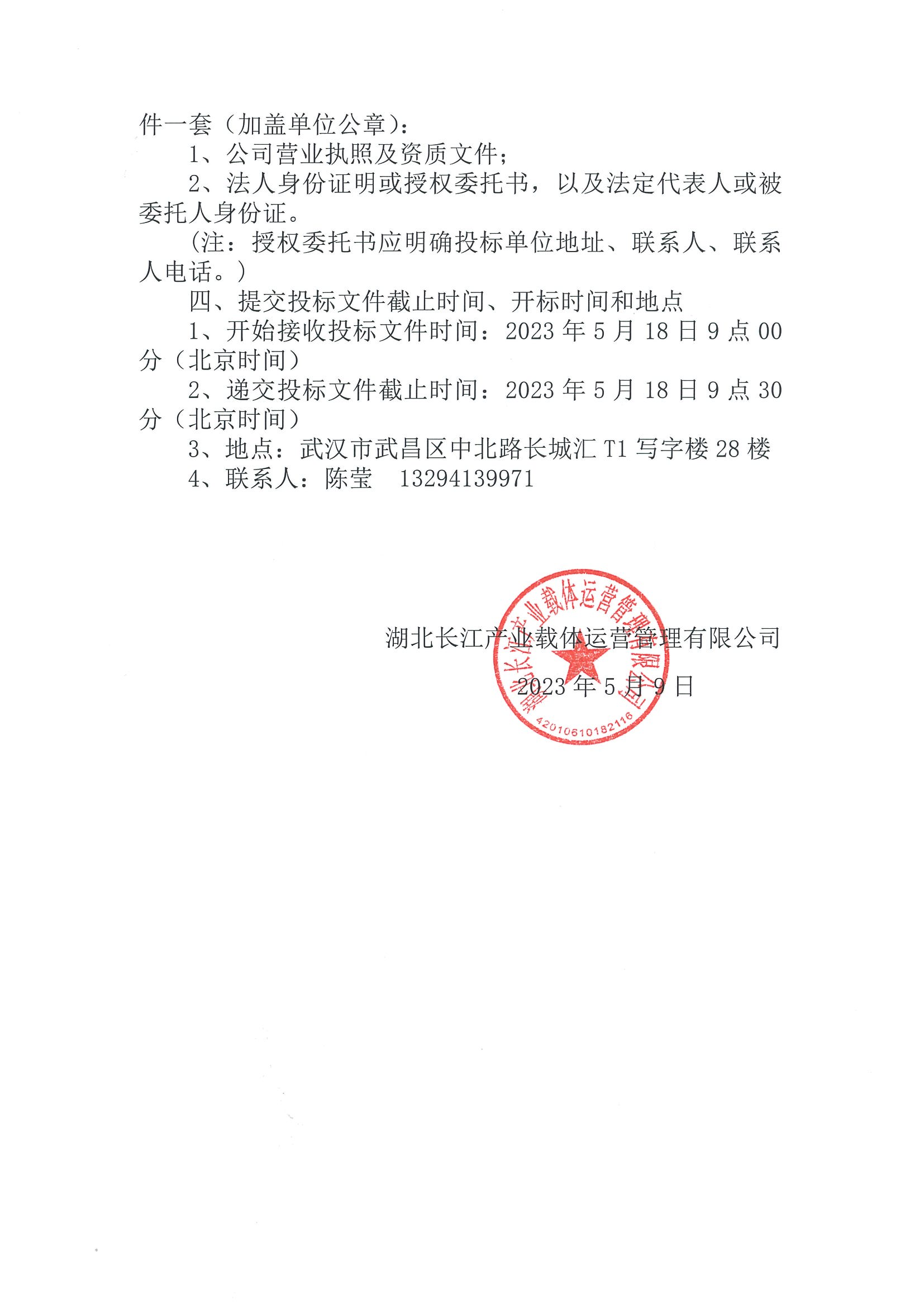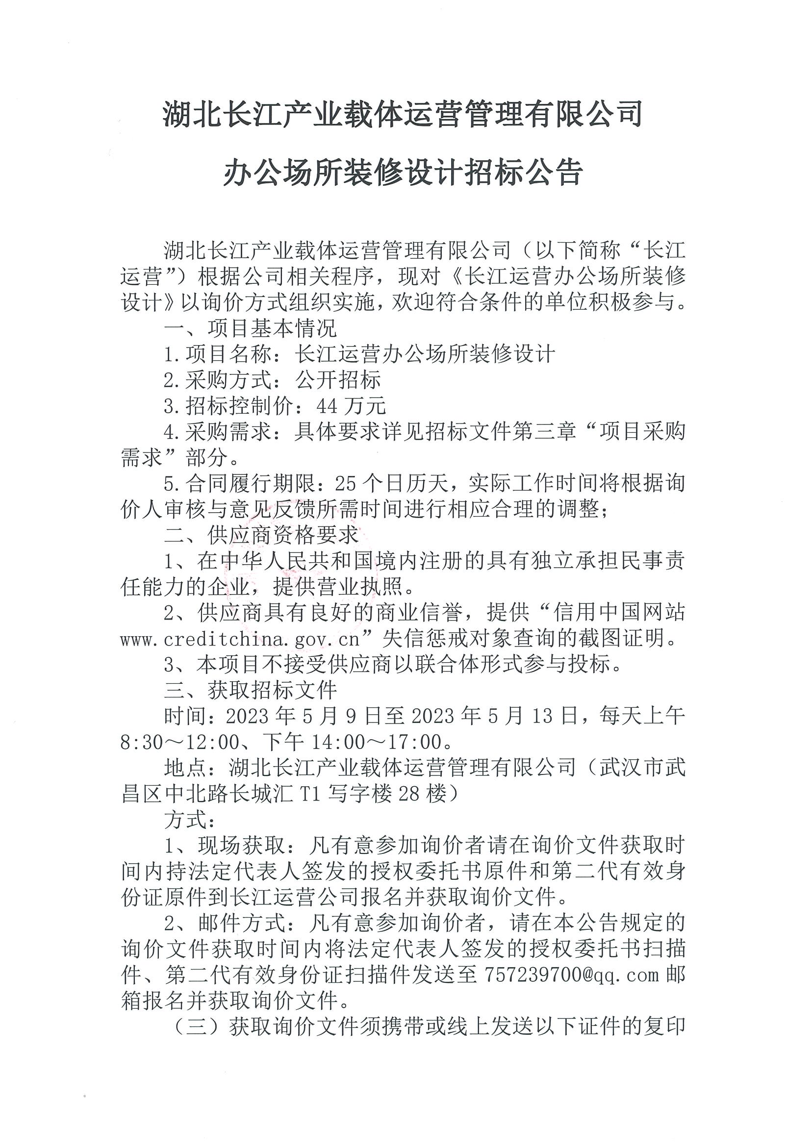 湖北长江产业载体运营管理有限公司 办公场所装修设计招标公告